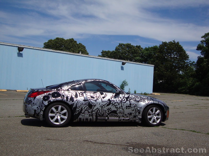 This hand drawn Nissan Z was created by artist Ted Mikulski using paint pens that took 160 hours or 11 days to bring to life. This art car was a reflection of an idea he had that art should not only be designated for areas like galleries and studios, but taken to the streets. The artwork has several themes including Pac-Man, Where's Waldo, Space Invaders (my all time favorite video game growing up), Tetris, Mario and others, all weaved together in a comprehensive abstraction. The car was then clear coated to permanently seal in the art work and was unveiled at the New Britain Museum of American Art in July of 2010. It is no longer a car, its an art car, nice work Ted.